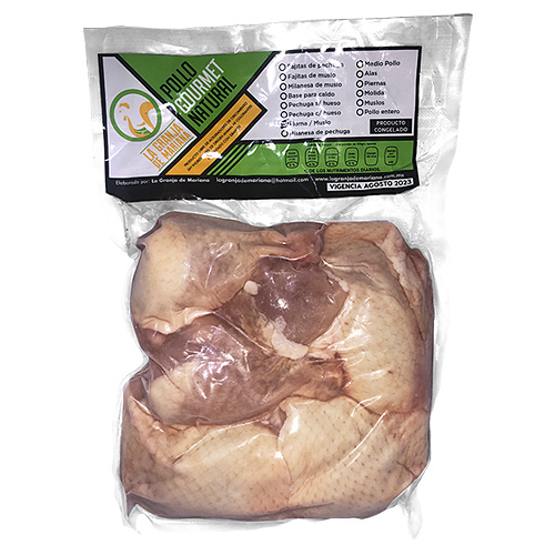 Esta bolsa de piernitas y mulsos es de 1 kg, empacados al vacío y congelados para preservar la inocuidad del alimento. ¿Qué tal estas piernas y muslos para un mole casero?